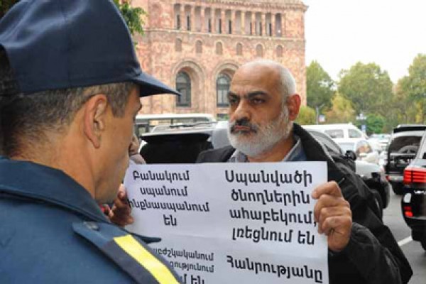 — Դուք ի՛մ գրպանից եք վճարում Եվրոպական դատարանին, — շարունակում էր վանկարկել դահլիճի մուտքի դիմաց պառկած Գասպարին, — դո՛ւք ձեր անպատվաբե՛ր աշխատանքի, անբարեխի՛ղճ աշխատանքի համար ի՛մ գրպանից եք վճարվում, ե՛ս եմ վճարում ձեր աշխատավարձը, դուք քրեական աշխարհի ներկայացուցիչներին չե՛ք համարձակվում որևէ բան ասել: Հարսնաքարի գործով, երբ կողմը սեռական հայհոյանք էր տալիս դո՛ւք չհամարձակվեցիք ծպտուն հանել, երբ Նորայր Հայրապետյանը քացով խփեց, կահավորանքը ջարդեց, չհամարձակվեցի՛ք ձեն հանել. ամո՛թ ձեզ: Դո՛ւք՝ դատավորներդ, քրեակա՛ն աշխարհից եք, հանցագործնե՛ր եք, սրիկանե՛ր, դո՛ւք՝ դատավորնե՛րդ, քրեակա՛ն աշխարհի ներկայացուցիչներ եք: Բոլոր հանցագործությունները կատարվում են ձեր՝ դատավորների անունով, ազգանունով ուրացությամբ, անպատի՛վ դատավորներ, դուք հանցագո՛րծ սրիկաներն եք: