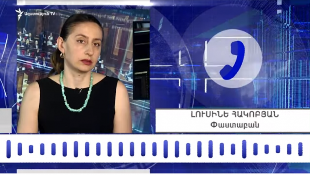 — Գնահատում եմ միանգամայն անպատասխանատու վարքագիծ և թքած ունենալ մեր օրենդիր մարմնի վստահության վրա և ուղղակի չեմ պատկերացնում, թե դրանից հետո այդ նույն օրենդիր մարմնի մեծամասնությունը ինչպես պետք է նրան ընտրի ավելի կարևոր պաշտոնում, չի բացառվում, որ վաղը, եթե նա հավակնի Սահմանադրական դատարանի նախագահի պաշտոնին և մնացած 8 դատավորները անվստահություն հայտնեն նրան, նա դարձյալ գնահատելու է, որ ինքը ևս անելիք չունի, — նշում է ԼուսինեՀակոբյանը:
