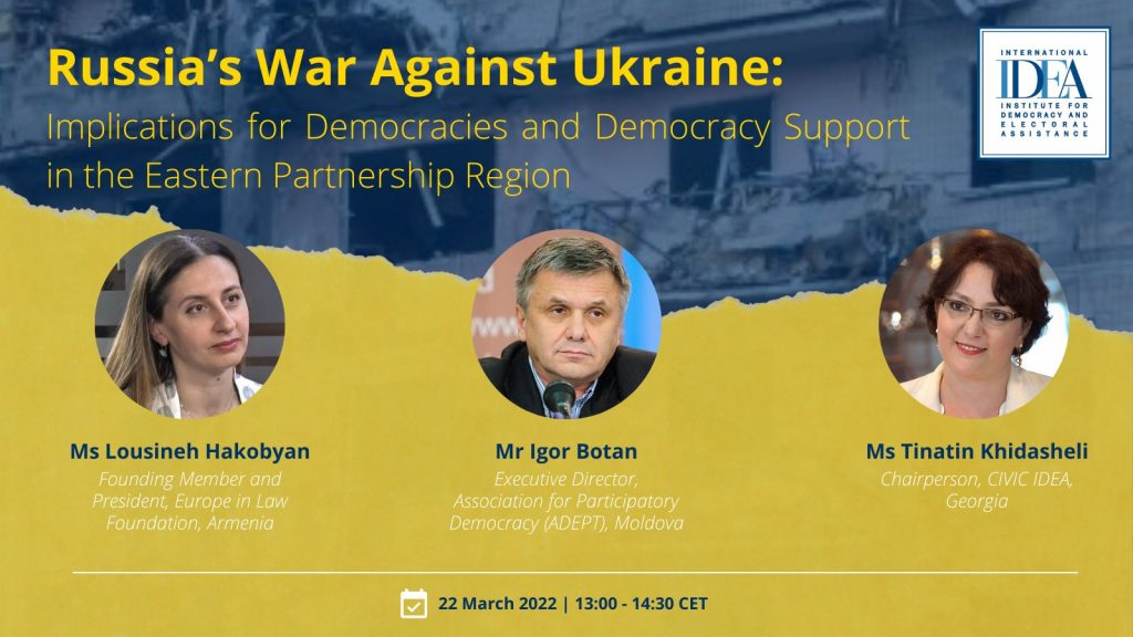On 22 March, ELA’s President Lousineh Hakobyan participated in a discussion organized by International IDEA on the implications of Russia’s war in Ukraine on democracies in Armenia, Georgia and Moldova.