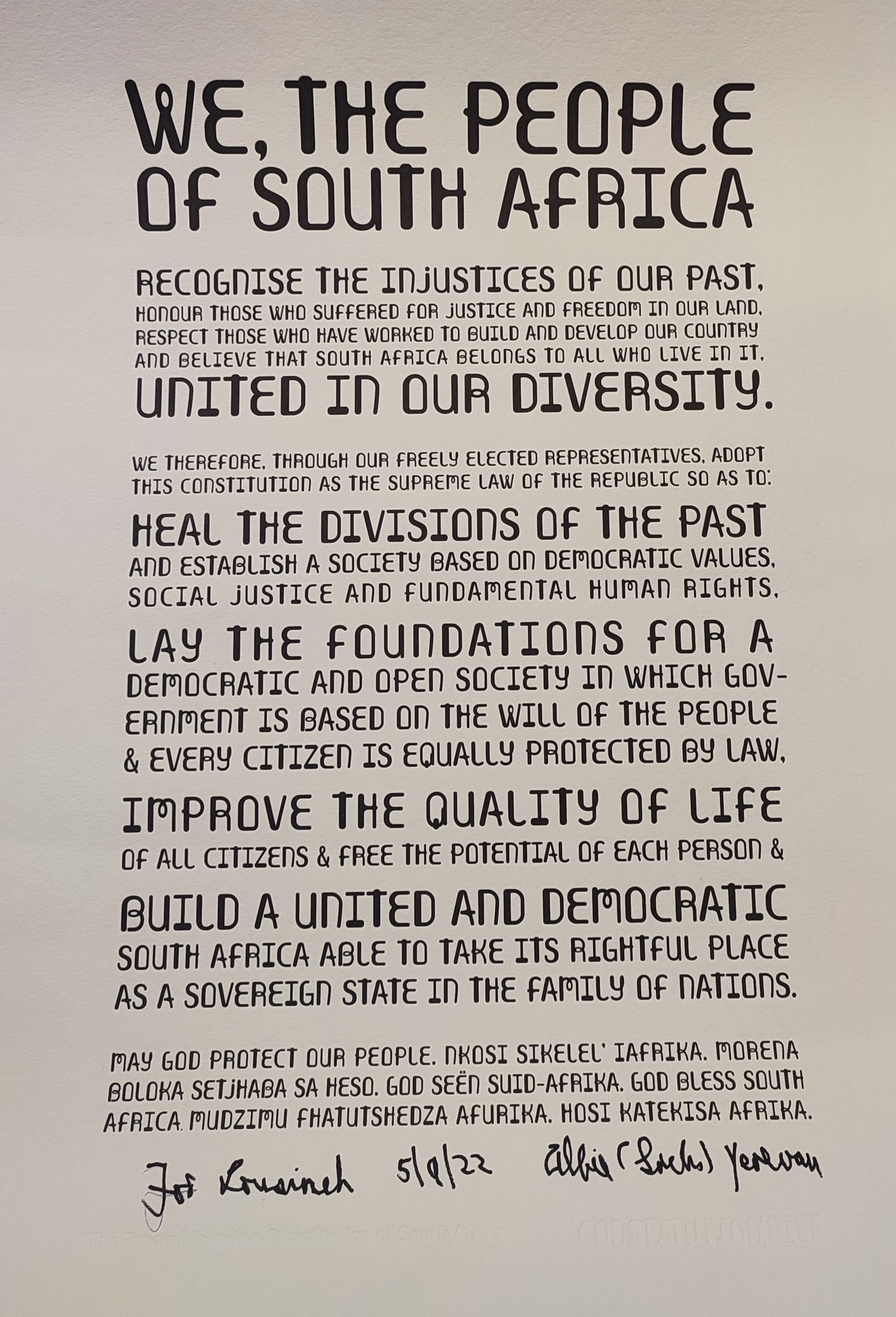 Ռումբի պայթյունից ստացված վնասվածքներից ապաքինվելուց հետո նա իր ժամանակը նվիրել է Հարավային Աֆրիկայի նոր ժողովրդավարական Սահմանադրության մշակմանը: 1990-ին վերադարձել է հայրենիք և որպես Սահմանադրական կոմիտեի և ՀԱԿ Ազգային գործադիր մարմնի անդամ, ակտիվ մասնակցություն ունեցել Սահմանադրության ընդունման շուրջ ընթացող բանակցություններին, որոնք հանգեցրել են Հարավային Աֆրիկայի սահմանադրական ժողովրդավարության կայացմանը: 1994 թվականի առաջին ժողովրդավարական ընտրություններից հետո նախագահ Նելսոն Մանդելան նրան նշանակել է նորաստեղծ Սահմանադրական դատարանի դատավոր։