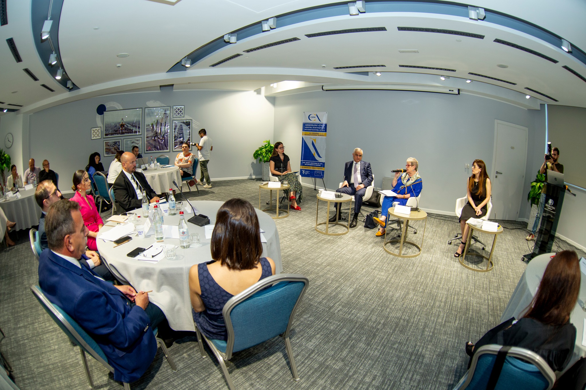 Քննարկմանը ողջույնի խոսքով հանդես է եկել ՀՀ փոխվարչապետ Մհեր Գրիգորյանը, Հայաստանում ԵՄ պատվիրակության ղեկավար, դեսպան Անդրեա Վիկտորինը եւ ԵՄ-Հայաստան քաղհասարակության պլատֆորմի համանախագահ Լուսինե Հակոբյանը։