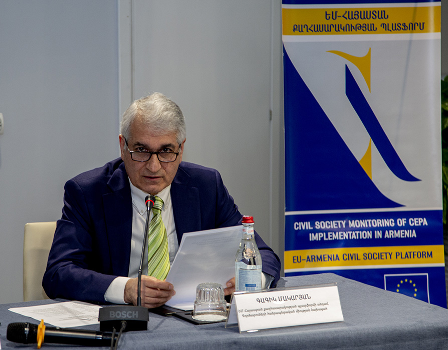 ՀՀ-ԵՄ քաղհասարակության պլատֆորմի մաս կազմող Հայաստանի գործատուների հանրապետական միության նախագահ Գագիկ Մակարյանը հրապարակել է «Կայուն ձեռնարկատիրությունը եւ կայուն զբաղվածությունը ՀՀ-ում» զեկույցը, որն ունի խորհրդատվական նշանակություն ՀՀ կառավարության համար՝ ՀԸԳՀ դրույթների ներդրման գործընթացում։ Ուսումնասիրությունում ընտրվել են ՀՀ տնտեսության կարեւոր հինգ ոլորտներ, ինչպես նաեւ ծառայությունների մասով՝ հաշվապահություն, իրավաբանական ծառայություններ, տեղեկատվական տեխնոլոգիաներ: