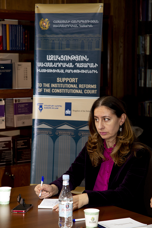 Լուսինե Հակոբյանը ներկայացրել է «Աջակցություն Սահմանադրական դատարանի ինստիտուցիոնալ բարեփոխումներին» ծրագրի հաղորդակցության բաղադրիչը և նշել, որ այս հանդիպումը, ի թիվս այդ բաղադրիչով իրականացրած մի շարք գործողությունների, միտված է նպաստելու Սահմանադրական դատարանի և այլ շահագրգիռ կողմերի միջև հաղորդակցության ամրապնդմանը:
