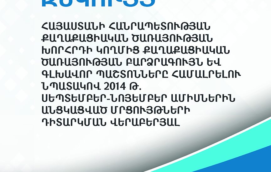 Հայաստանի Հանրապետության քաղաքացիական ծառայության խորհրդի կողմից քաղաքացիական ծառայության բարձրագույն և գլխավոր պաշտոնները համալրելու նպատակով 2014թ. սեպտեմբեր-նոյեմբեր ամիսներին անցկացված մրցույթների դիտարկման վերաբերյալ